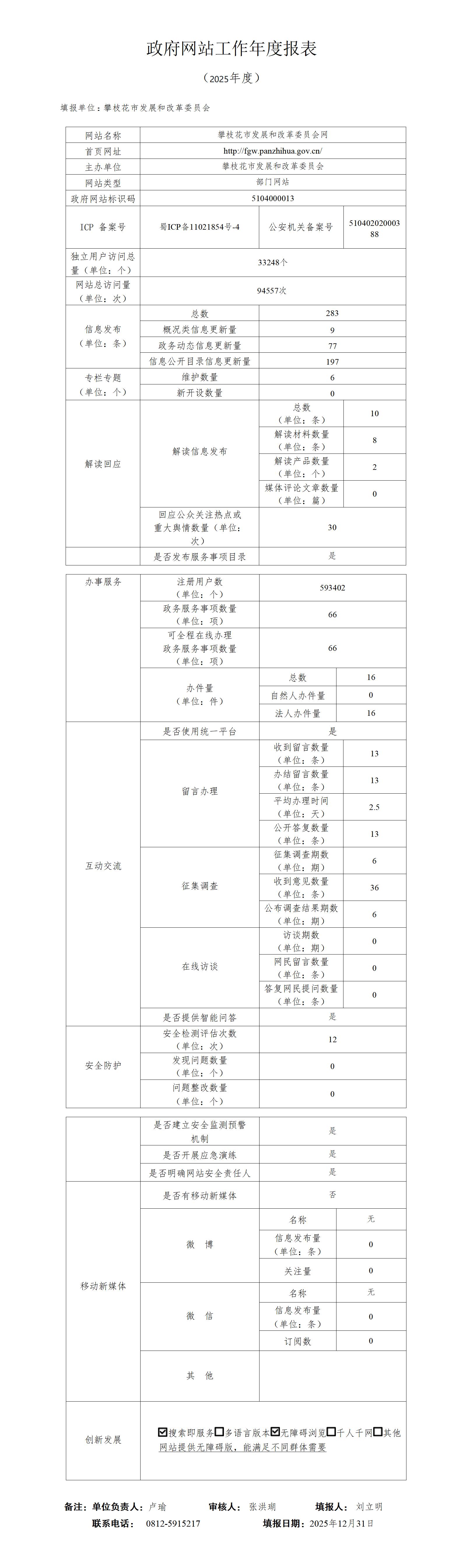 攀枝花市发展和改革委员会网站工作年度报表(2025年度)
